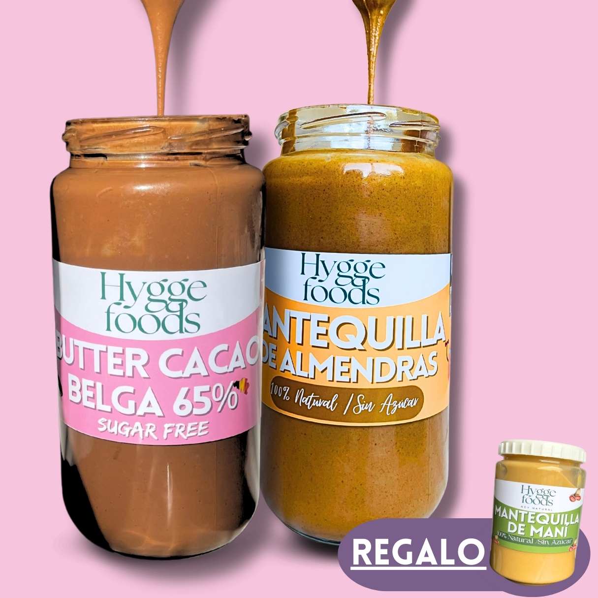 pack match perfecto: mantequilla CHCOCOLATE BELGA 65% +  mantequilla de ALMENDRAS REGALO + envío GRATIS