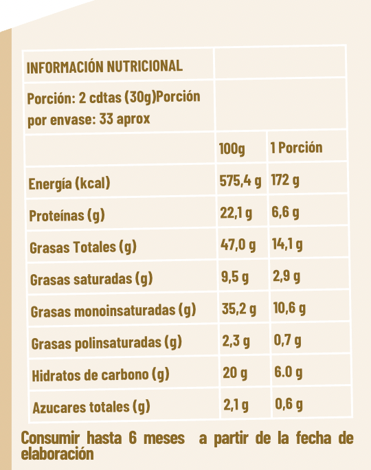 INGREDIENTES MANTEQUILLA DE ALMENDRAS TOSTADAS 1 INGREDIENTE 100% NATURAL